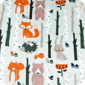 - Cotton on both sides: Forest Animals print (each animal approx 10cm tall) reversing to plain black